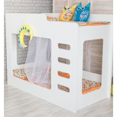 Экономия пространства является главным преимуществом такой конструкции в комнатах, где есть двое детей. Почти два квадратных метра освобождается при поднятии второго спального места на второй ярус. А это — свободное пространство, чистый воздух и большая по размеру игровая зона на полу!
